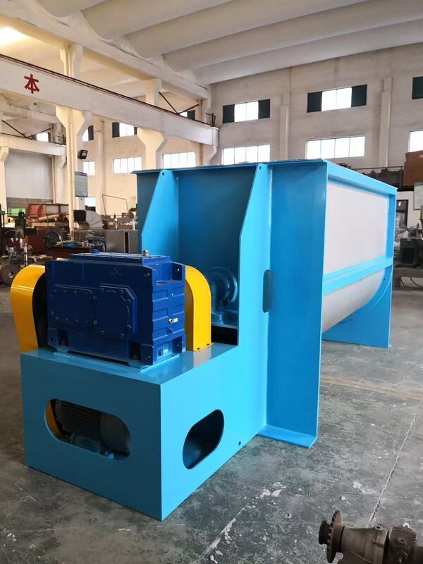 This horizontal ribbon mixer utilizes inner and outer helical ribbons rotating in opposite directions to move materials axially and radially, ensuring thorough blending without dead zones. The optimized ribbon structure enables gentle yet efficient mixing, preserving the physical properties of powders while achieving high uniformity.